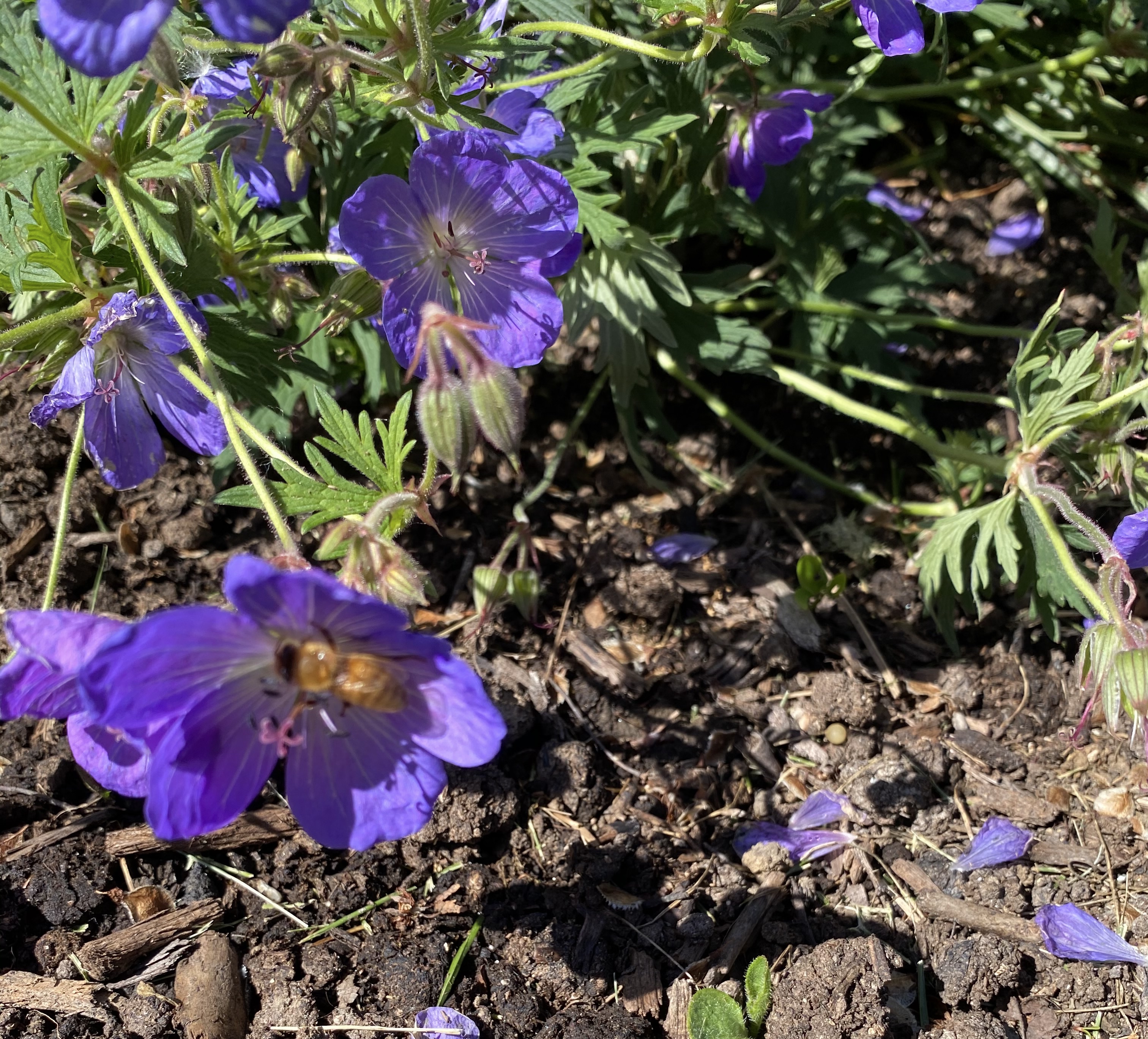 Spotting Title: honey bee on johnsons blue geranium 1