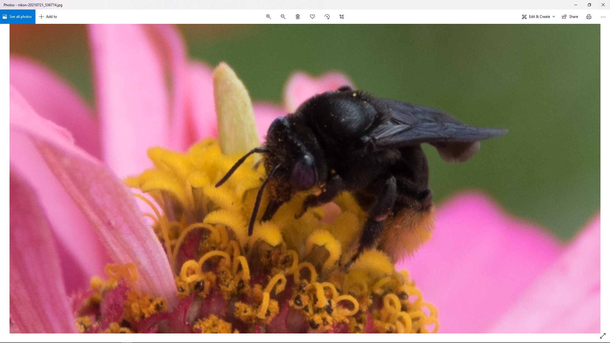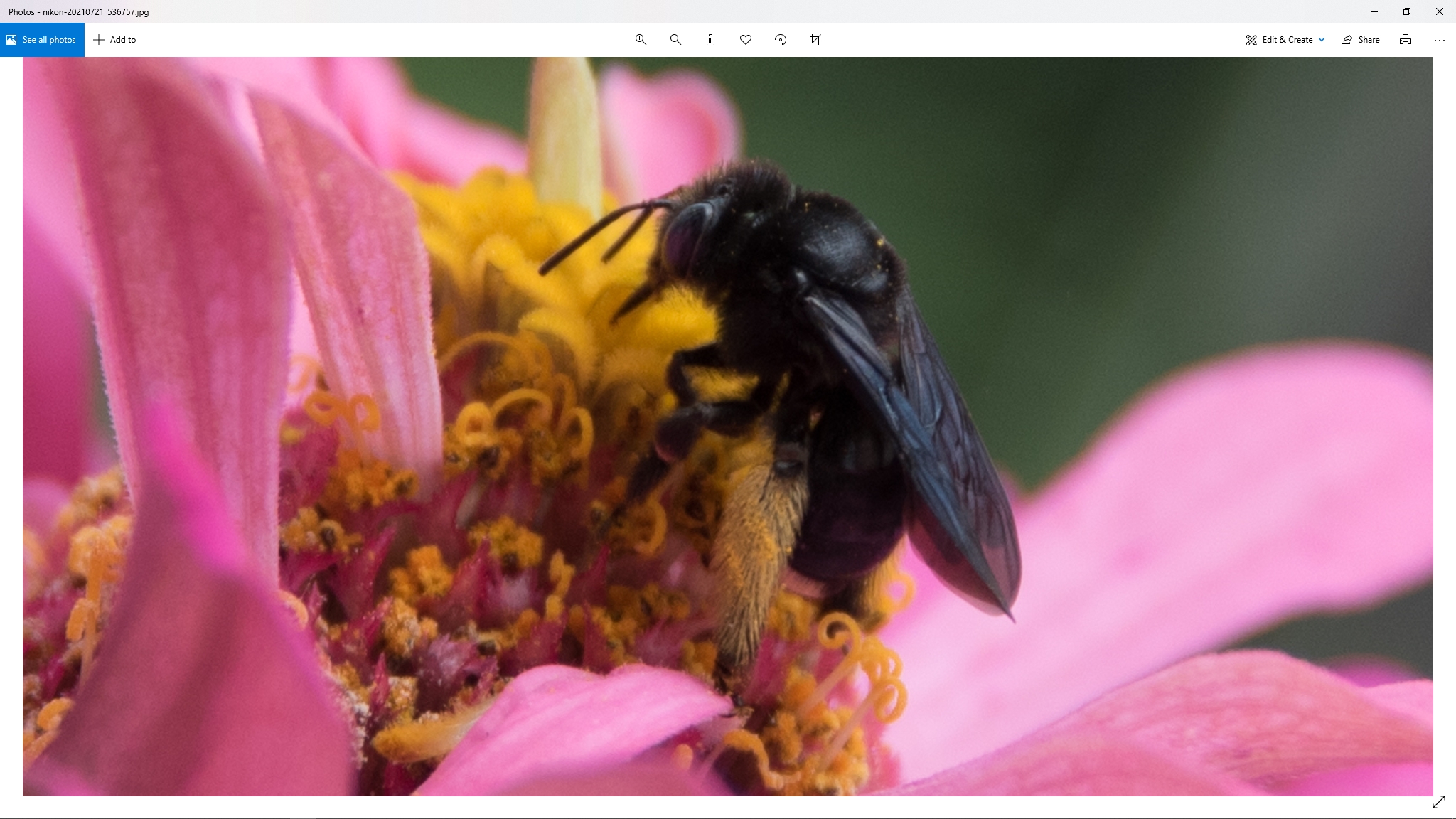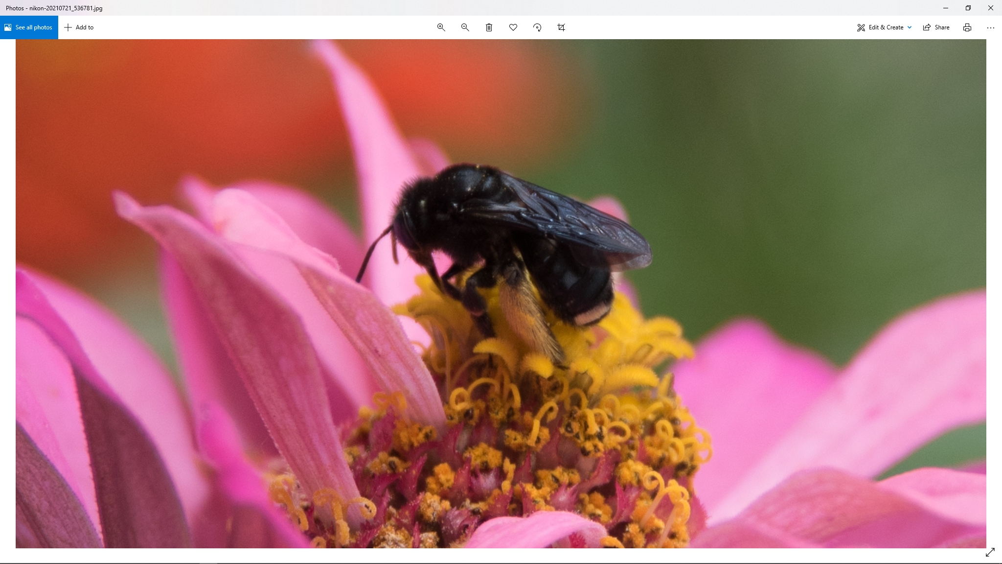 Spotting Title: Black Bee on Zinnia