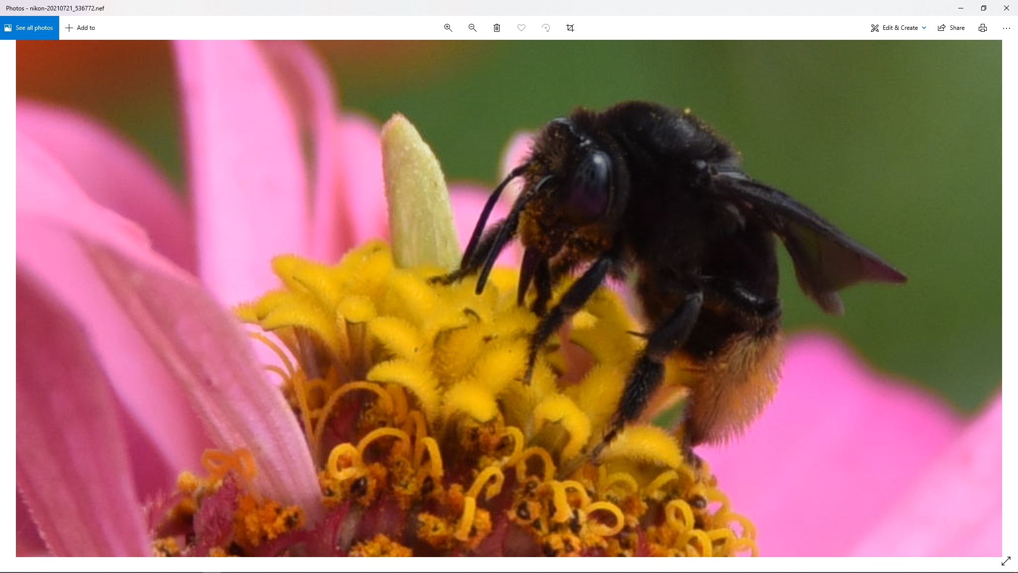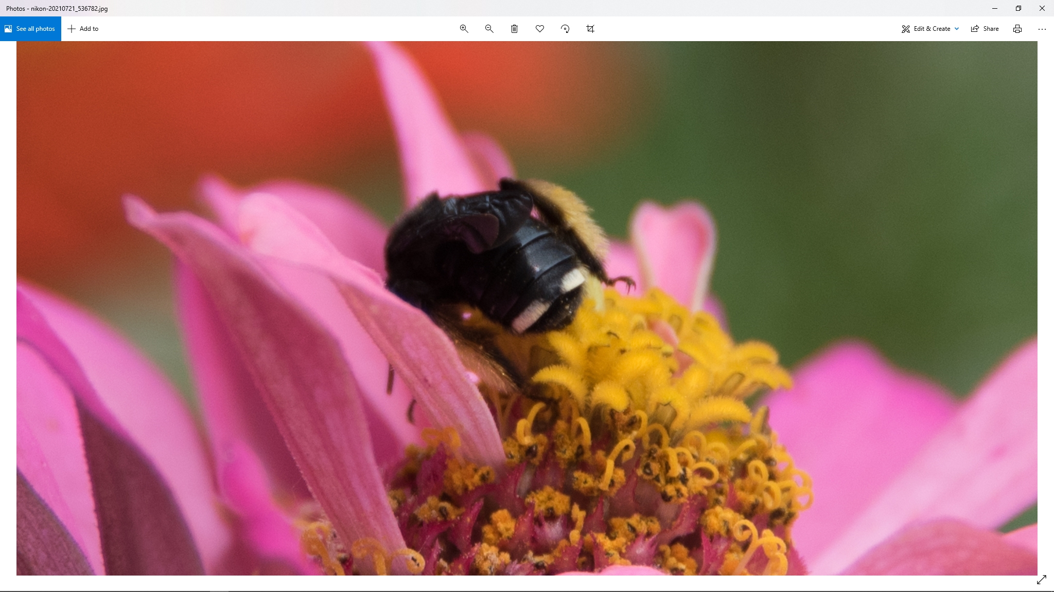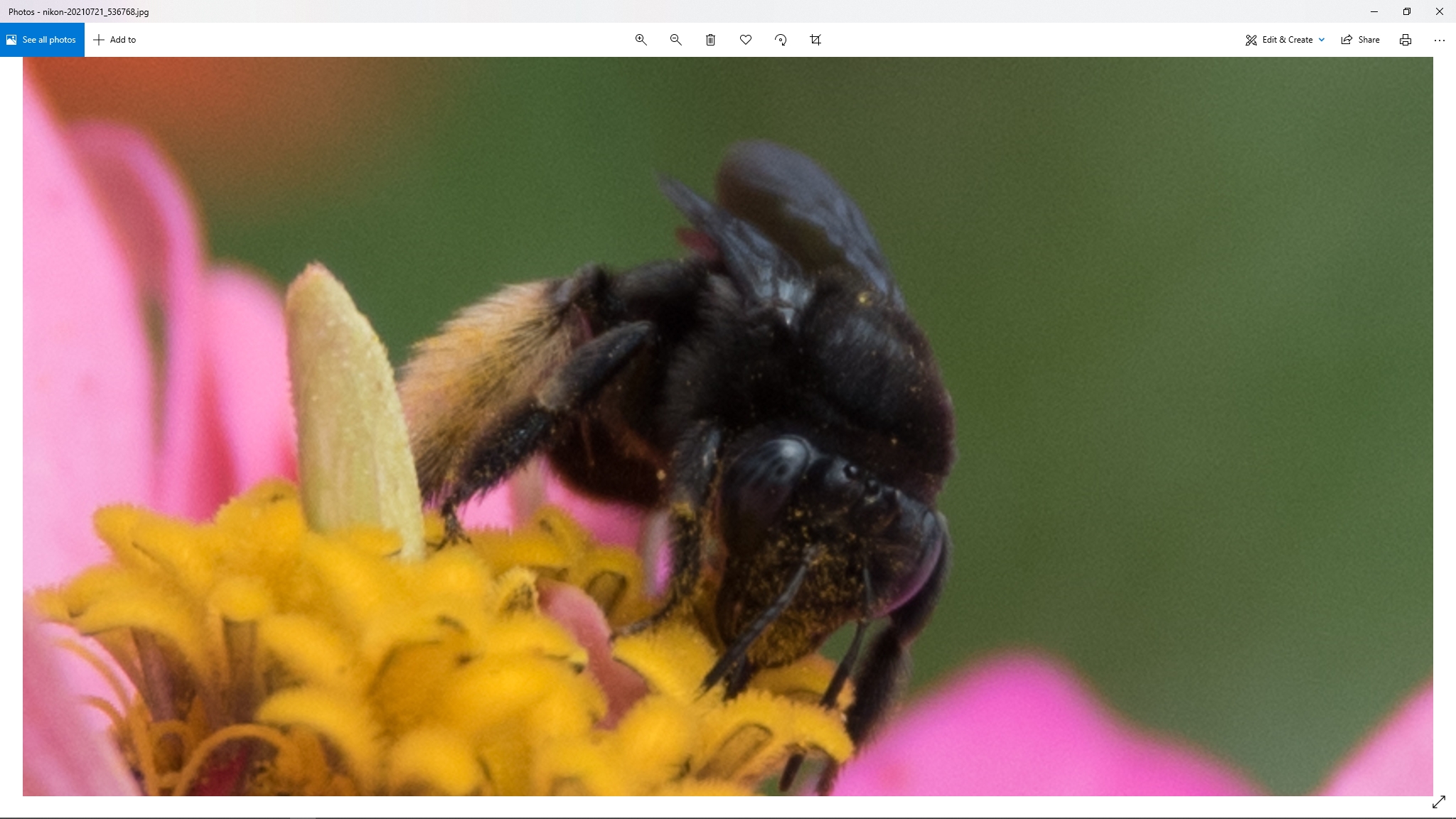Spotting Title: Black Bee on Zinnia