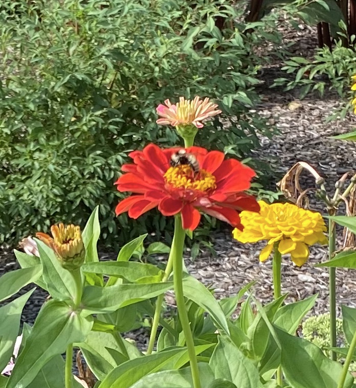 Spotting Title: bumble bee on zinnia