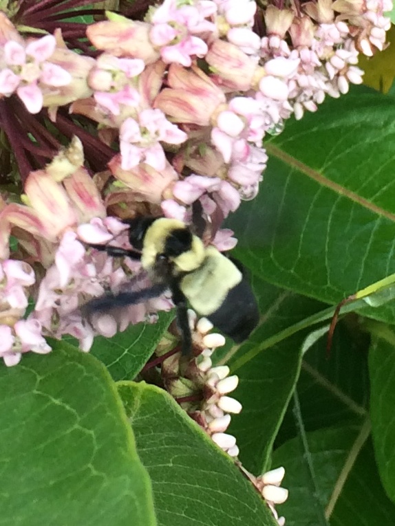 Spotting Title: Bombus1 visiting Common Milkweed; morning after storm